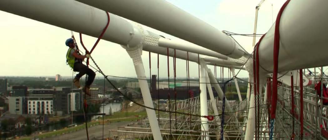 Our remit the Compression Truss required Strengthening to carry the extended roof at the Queen Elizabeth Olympic Park Stadium this is a prime example of how rope access can be introduced to deliver a more efficiency with combined solution.